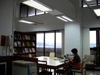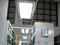 閱覽區臨大面開窗,卻未善加利用,及舊有燈具不但無法有效照明且浪費能源,其所形成的眩光,不僅影響視力,也降低空間之舒適性。 |