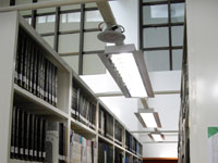 利用書櫃間之防傾倒鋼管,將燈具配置在適當位置,並於走道設置紅外線感應器,藉由光阻感應及透過人體感應,達到無人時自動開關燈具,有效達到節能。 |