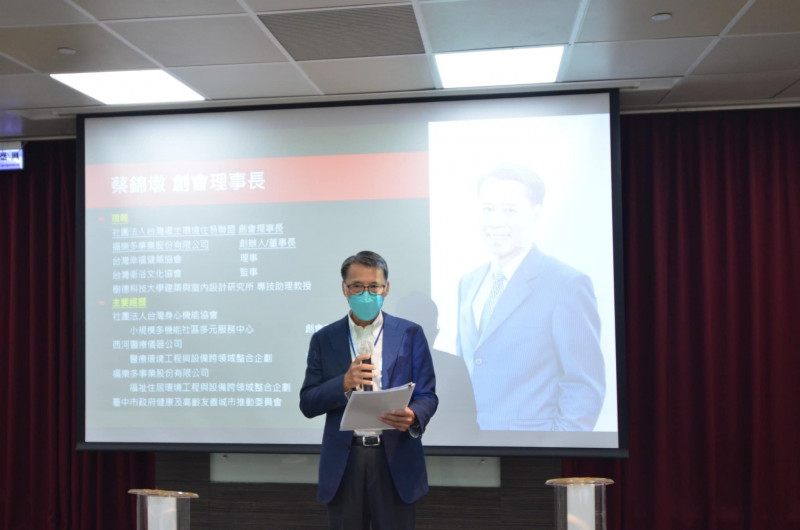 福生環境住易聯盟蔡錦墩理事長主持開場活動表示,台灣即將於2025年進入超高齡社會,亟需建立可以對應高齡居家環境及照顧問題的解決方案,這個龐大的社會工程刻不容緩,並且需要依賴政府與民間各種產業跨域整合來推動,本次活動正是對應此一需求而來。